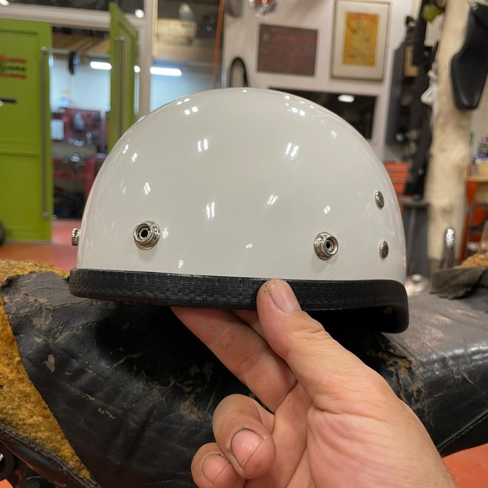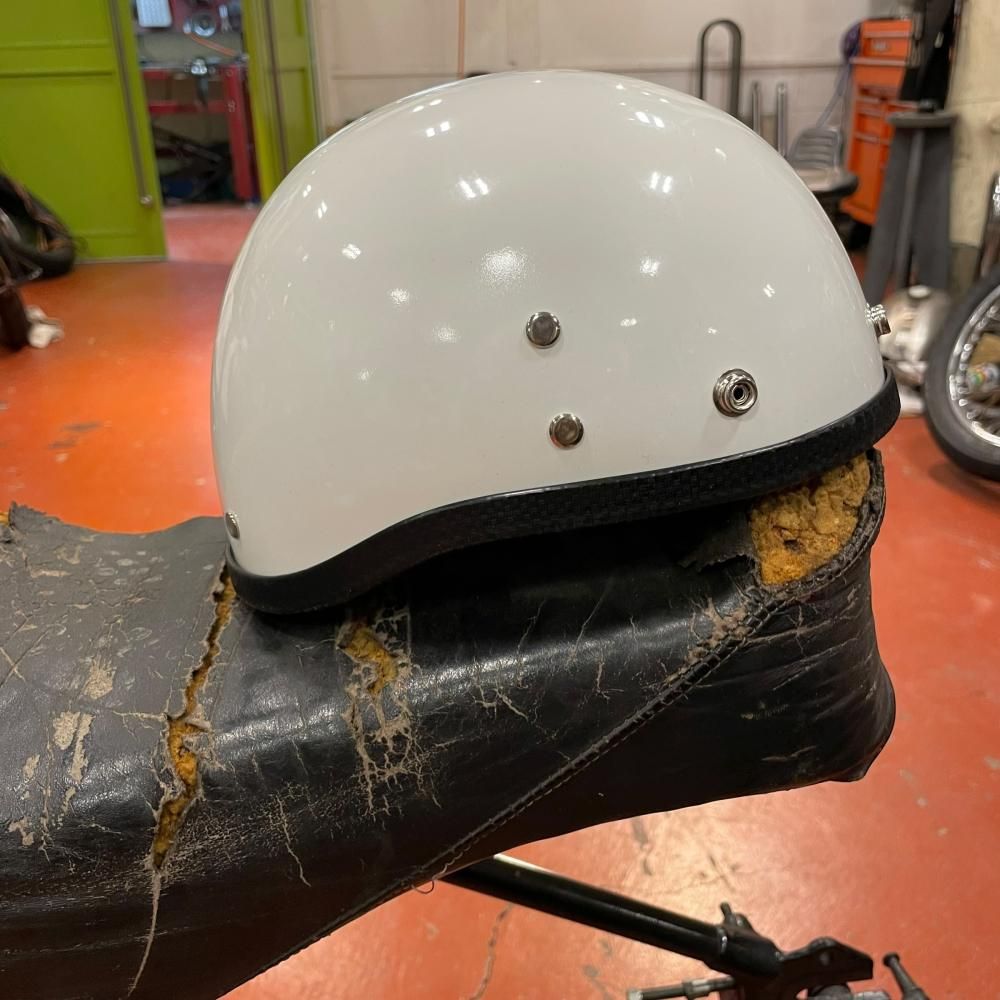 永い間封を切らずに忘れられていたDEAD STOCK状態の箱を開け、真っ白なヘルメットを中から取り出す。