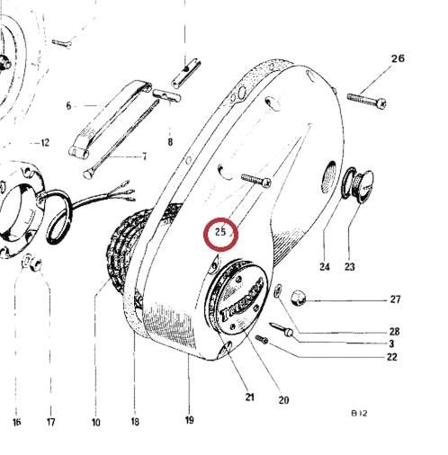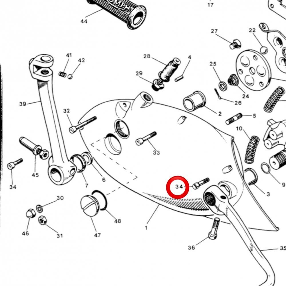 Triumph 69年以降650/750、タイミングカバー、プライマリーカバー、ギアボックスカバー(インナー&アウター)などに使用されるチーズヘッドスクリューです。
