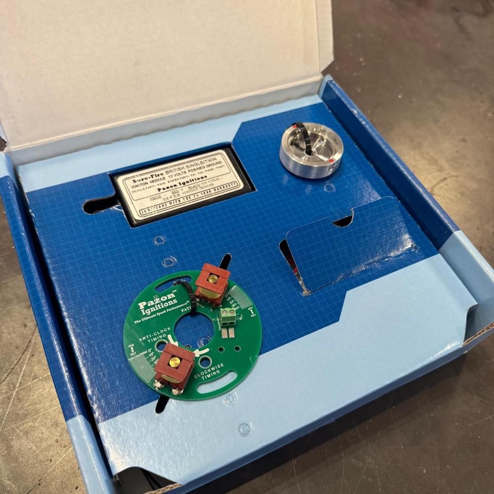 ポイント/ガバナーを丸ごとこちらのキットに交換して使用します。従来の機械式点火システムに比べより正確なタイミングで強力な着火が可能となります。